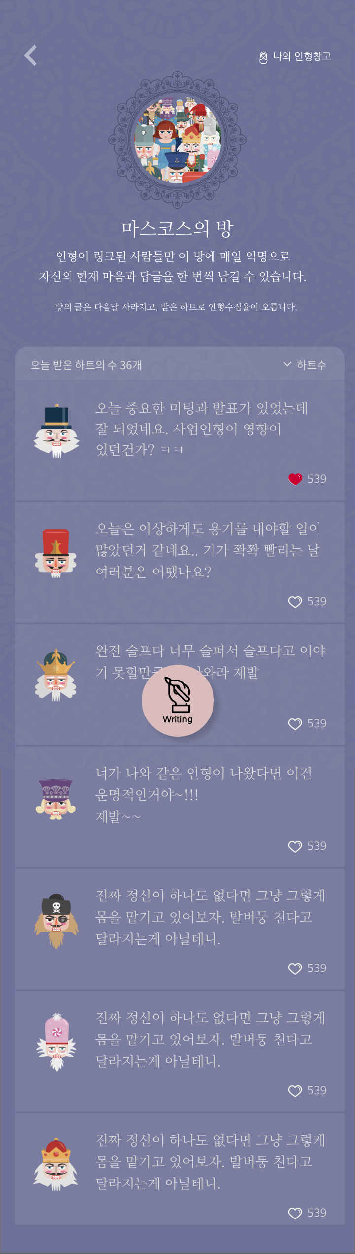 매일 선택을 통해 다른 인형들을 만나고, 새로운 나의 감정을 발견해 보세요. 다양한 인형들이 당신의 하루를 채워준답니다.